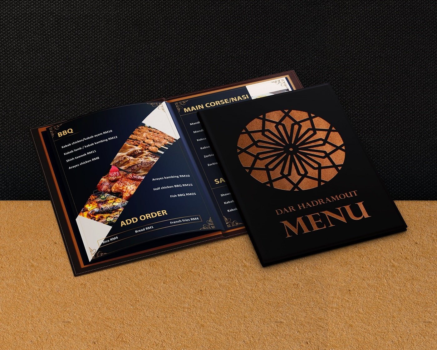Dar Hadramout is a traditional Arabic restaurant located in Malaysia, its visual identity shows classic and contemporary design to satisfy an established clientele, expecting traditional food and service